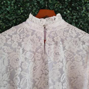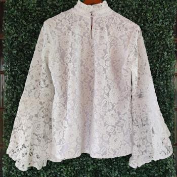 Apresentando um toque de elegância e sofisticação, esta blusa branca de renda da Madrecita é uma peça encantadora para adicionar ao seu guarda-roupa. Nova e sem uso, está em perfeitas condições. Com mangas longas que adicionam um toque de estilo, esta blusa é ideal para ocasiões especiais ou para adicionar um toque de refinamento ao seu visual diário. Com uma composição de 100% poliéster, oferece conforto e durabilidade. Esta blusa é uma escolha versátil que combina com uma variedade de estilos e looks.