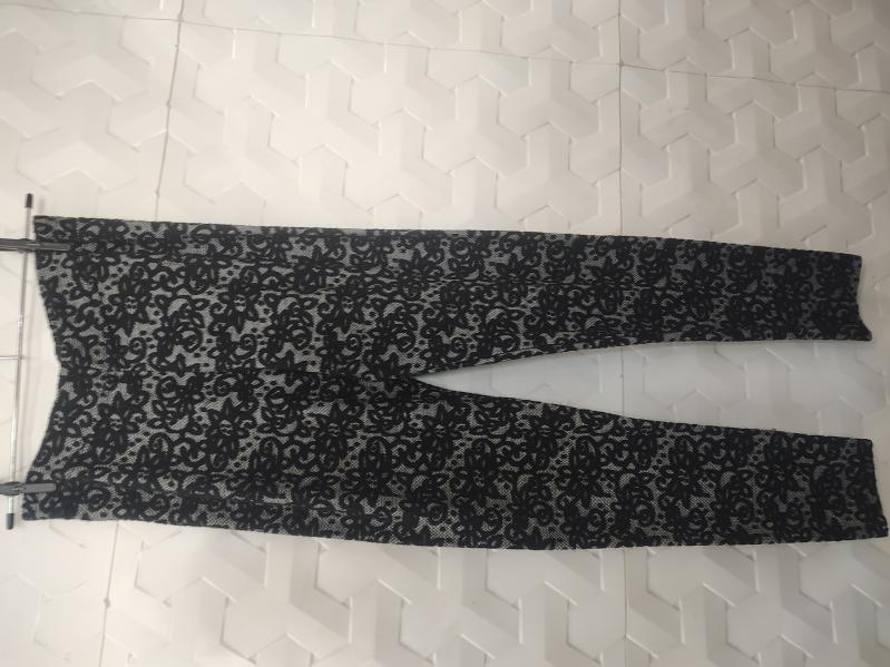 CALÇA FEMININA DE RENDA PRETA,65% VISCOSE E 35% POLIESTER.