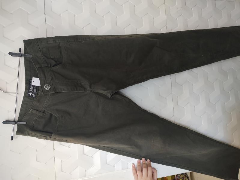 Calça verde militar jeans, 98% algodão e 2% elastano. Tamanho 40.