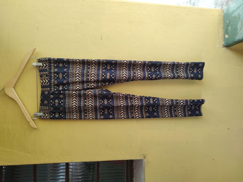 CALÇA LEGGING FEMININA DE MALHA ESTAMPADA MARROM E AZUL TAM G - RHEMA