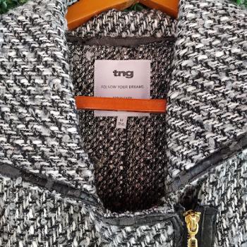 Super estiloso o casaco estilo tailleur ou blazer curto, novo, nunca usado, da marca brasileira tng no tamanho m, não estica, ele é forrado e super quentinho. Propício para estar elegante e arrasar neste inverno. Material como tricô fechado/lã. Desapego nosso, ebely.