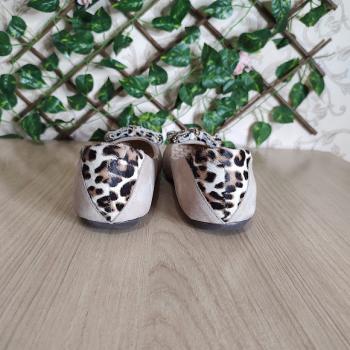 Sapatilha Boneca Confort Light Em Couro Bege Detalhes Em Animal Print Onça Tam 35 - RAFA´S