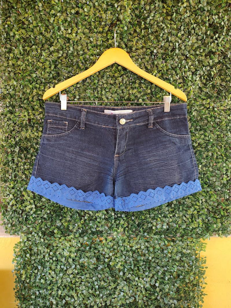 SHORT JEANS ESCURO FEM COM BORDA DE RENDA AZUL 44 - MARISA