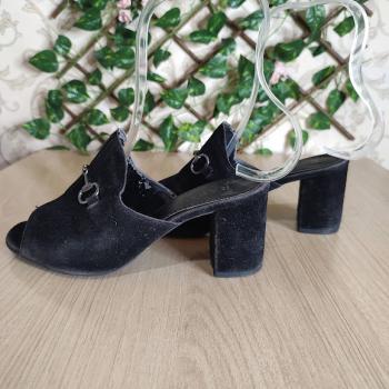 Tamanco Mule Preto Em Couro Camurça Com Detalhes Em PrataTam 35 - RAFA´S
